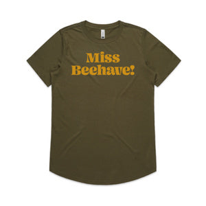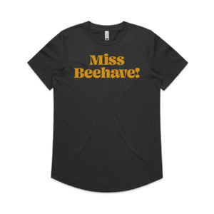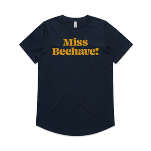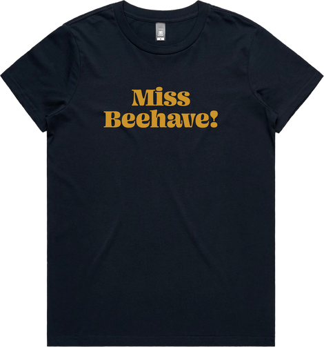 Ladies, let them know who's in charge and exactly what drink they can fetch you while you're at it. Women's Cube T in black, or Drop T in navy. Printed both sides, Beehave Craft Meadery on reverse.